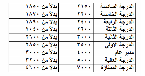 جدول يوضح زيادة المرتبات والاجور لجميع موظفى الدولة بعد قرار الرئيس اليوم
