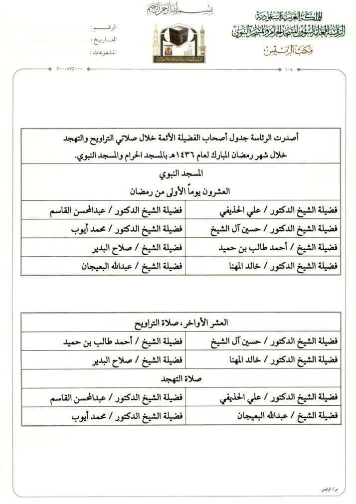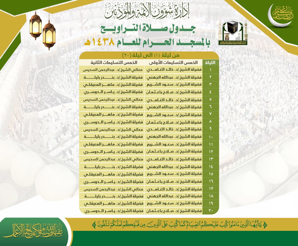 رئاسة شؤون الحرمين On Twitter جدولا صلاة التراويح بـ المسجد الحرام و المسجد النبوي لعـام ١٤٣٨ هـ