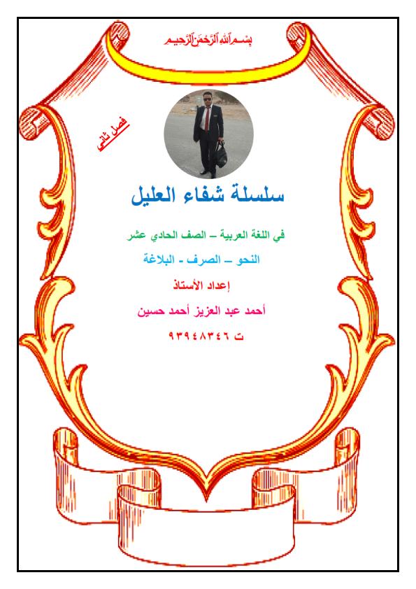 ملخص النحو والصرف والبلاغة من سلسلة شفاء العليل في مادة اللغة العربية للصف الحادي عشر