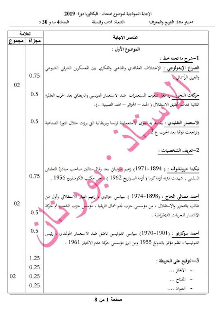 تصحيح موضوع التاريخ و الجغرافيا بكالوريا 2019 شعبة اداب وفلسفة Onec Bem Bac