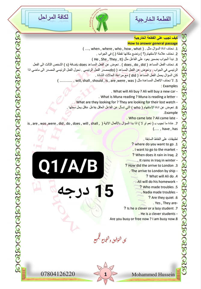اوراق مرشحات ضمان 100 درجة انكليزي ثالث متوسط الامتحان الوزاري بكلوريا بعد الحذف من التربية