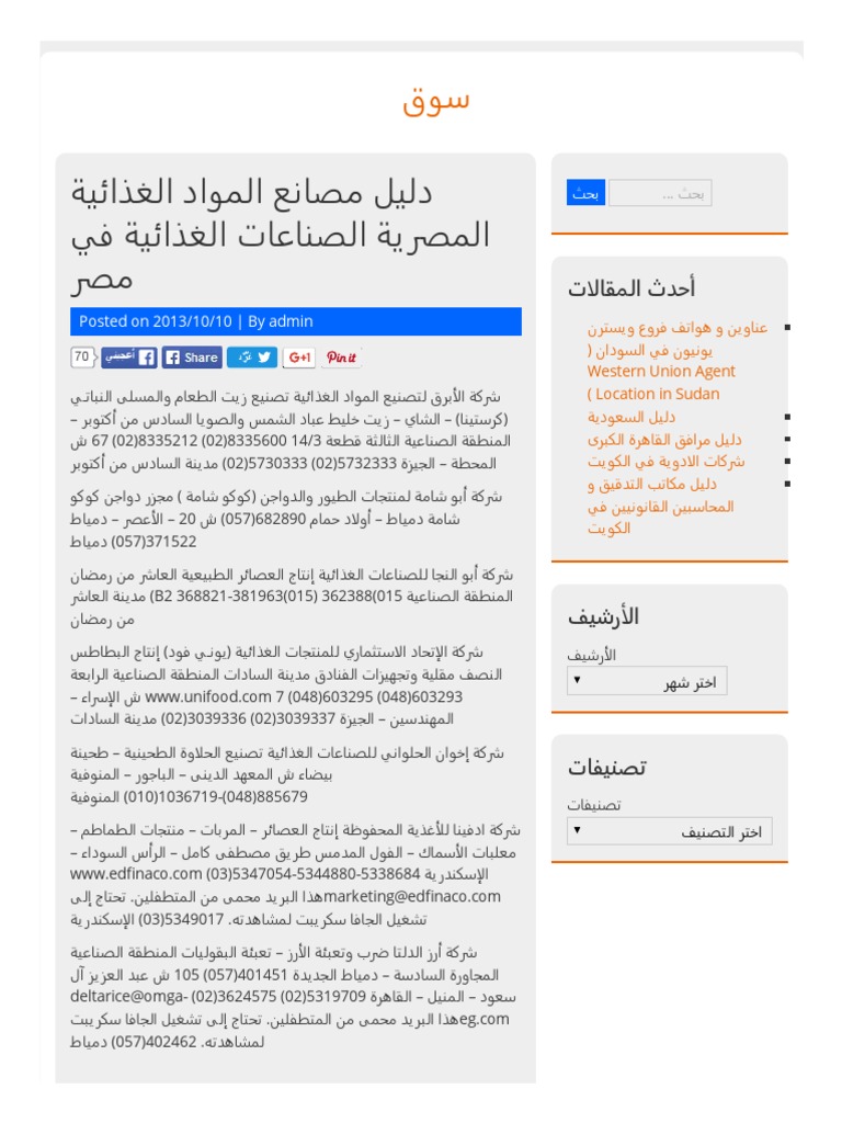 دليل مصانع المواد الغذائية المصرية الصناعات الغذائية في مصر سوق