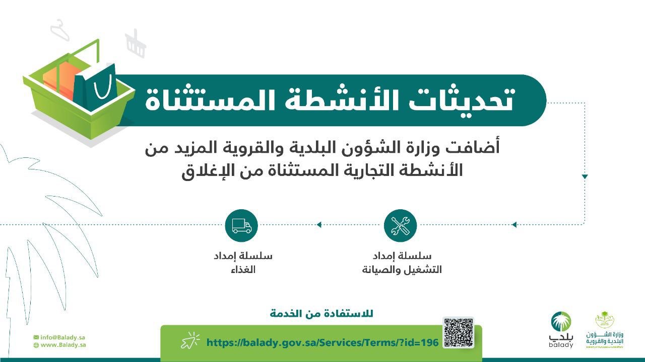 وزارة الشؤون البلدية والقروية On Twitter انفوجرافيك في إطار سعيها المستمر لخدمة المواطنين والمقيمين أثناء فترة منع التجول قامت وزارة الشؤون البلدية والقروية بتحديث وتحديد قطاعات سلسلة إمداد الغذاء والتشغيل والصيانة للمباني للأنشطة المستثناة